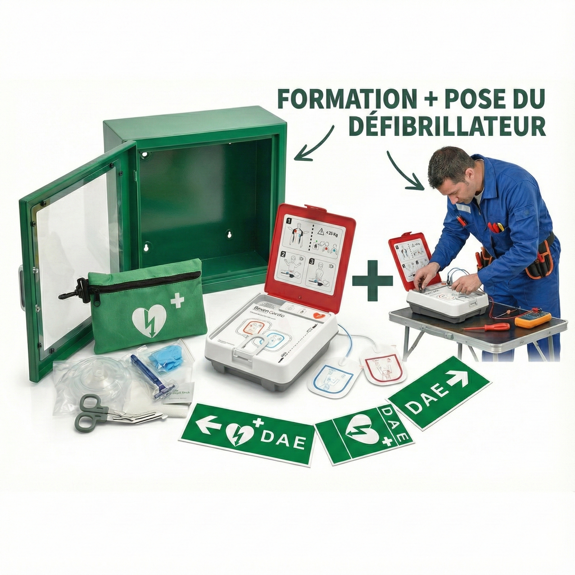 Contenu du pack défibrillateur clé en main